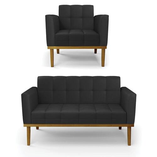 Sofá Namoradeira e Poltrona Base de Madeira Castanho Elisa Corino D03 - D`Rossi - Preto