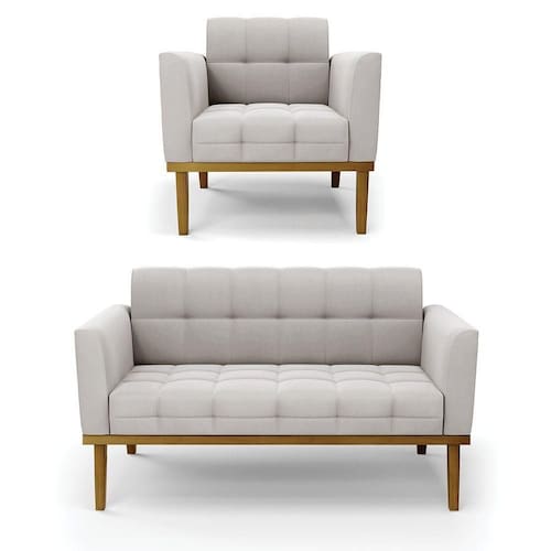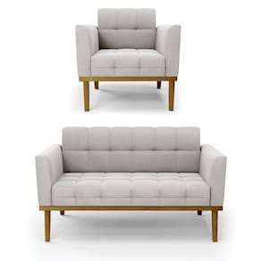 Você irá receber: 01 Sofá Namoradeira e 01 Poltrona - Entregue em: 02 Volumes