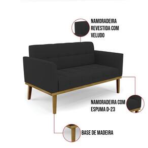 Você gosta de colecionar vários momentos memoráveis com sua família e amigos? Que tal recebê-los, com móveis de altíssima qualidade que só a D'Rossi tem? O Sofá Sofá Namoradeira e Poltrona Elisa é adequado para você! Seu design retrô é a grande tendência do momento. Pode ser utilizado em diversos espaços da casa, em salas, hall de entrada, quartos, cozinhas, varanda, sacada, escritório, dentre outros. Contém as seguintes características: A estrutura é feita de madeira de Eucalipto 100% de reflorestamento, e a Base de Madeira Fixa Castanho, além de ser resistente e durável, suporta em média até 120 kg. Assento, encosto e braços, contém enchimento de espuma D-23 e é estofada em tecido Veludo, que oferece muito conforto e resistência ao sentar, com aquela sensação de maciez e aconchego. Possui também, detalhes de costura no encosto e assento, resultando em um acabamento impecável, conferindo muito mais valor e elegância ao seu espaço. Para complementar a decoração com esse lindo kit Sofá Sofá Namoradeira e Poltrona Elisa, a dica é utilizar mantas, almofadas ou vasinho de flor. E pronto, seu cantinho estará perfeito para descansar e relaxar! Aqui, você encontra várias opções, para que seus amigos e familiares se sintam acolhidos. Garanta já seu kit Sofá Sofá Namoradeira e Poltrona Elisa.