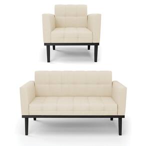 Estrutura: Madeira Eucalipto Espuma: D-23 Tecido: Veludo Tipo de pés: Base Madeira Fixa Preto Peso suportado: Até 120 Kg Garantia: 90 dias contra defeito de fabricação Montagem: O produto vai montado, apenas parafusar a base Instruções de limpeza: Utilizar um pano limpo e levemente úmido Você irá receber: 01 Sofá Namoradeira e 01 Poltrona - Entregue em: 02 Volumes