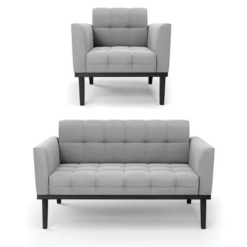 Você irá receber: 01 Sofá Namoradeira e 01 Poltrona - Entregue em: 02 Volumes