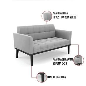 Você gosta de colecionar vários momentos memoráveis com sua família e amigos? Que tal recebê-los, com móveis de altíssima qualidade que só a D'Rossi tem? O Sofá Sofá Namoradeira e Poltrona Elisa é adequado para você! Seu design retrô é a grande tendência do momento. Pode ser em diversos espaços da casa, em salas, hall de entrada, quartos, cozinhas, varanda, sacada, escritório, dentre outros. Contém as seguintes características: A estrutura é feita de madeira de Eucalipto 100% de reflorestamento, e a Base de Madeira Fixa Preto, além de ser resistente e durável, suporta em média até 120 kg. Assento, encosto e braços, contém enchimento de espuma D-23 e é estofada em tecido Suede, que oferece muito conforto e resistência ao sentar, com aquela sensação de maciez e aconchego. Possui também, detalhes de costura no encosto e assento, resultando em um acabamento impecável, conferindo muito mais valor e elegância ao seu espaço. Para complementar a decoração com esse lindo Kit Sofá Namoradeira e Poltrona Elisa, a dica é utilizar mantas, almofadas ou vasinho de flor. E pronto, seu cantinho estará perfeito para descansar e relaxar! Aqui, você encontra várias opções, para que seus amigos e familiares se sintam acolhidos. Garanta já seu Kit Sofá Namoradeira e Poltrona Elisa.