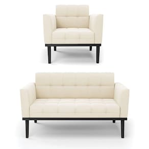 Você irá receber: 01 Sofá Namoradeira e 01 Poltrona - Entregue em: 02 Volumes