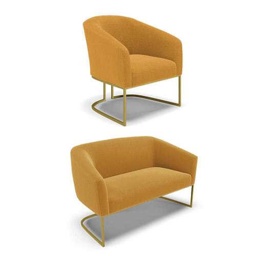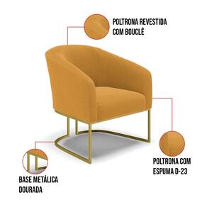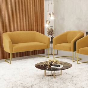 Sofá Namoradeira e Poltrona Base Industrial Dourado Stella Bouclê D03 - D`Rossi - Mostarda