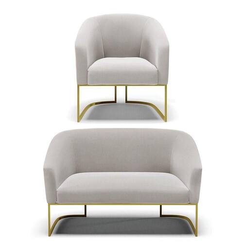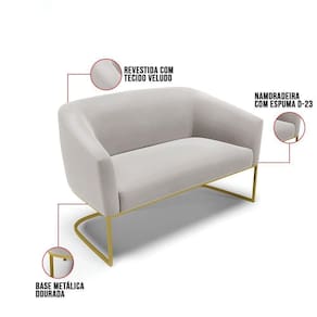 O Sofá Namoradeira 2 lugares com Poltrona Stella é uma peça que combina elegância, conforto e durabilidade. Este conjunto tem um design moderno e sofisticado, com Base Industrial Dourado e revestimento em tecido Veludo, que harmonizam com qualquer ambiente. Ele é ideal para sala de estar, recepções, mesa de jantar ou qualquer outro espaço que você queira decorar com estilo e bom gosto. Ele tem uma estrutura em madeira de reflorestamento eucalipto, que garante a resistência e a sustentabilidade do produto. Ele suporta até 120 kg de peso, podendo ser utilizado por pessoas de diferentes biotipos. Ele tem um acabamento reforçado e espuma de qualidade D23, que oferece maciez e aconchego. Tem pés em aço carbono e pintura eletrostática, que protegem o produto contra corrosão e desgaste. Ele tem assento com persintas elásticas, que proporcionam flexibilidade e conforto. O kit Stella é um produto de alta qualidade, beleza e funcionalidade. Ele é fácil de transportar, pois tem um peso leve e um tamanho compacto. O Sofá Namoradeira 2 lugares com Poltrona Stella é um produto que vai fazer a diferença na sua decoração e no seu bem-estar. Ele vai trazer charme, conforto e durabilidade para o seu ambiente. Aproveite essa oferta e leve para casa um Sofá Namoradeira 2 lugares com Poltrona qualidade por um preço incrível. Essa é a sua chance de ter um kit maravilhoso por um preço imperdível. Corra e garanta seu Sofá Namoradeira 2 lugares com Poltrona antes que acabe o estoque!