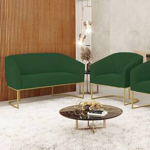 Sofá Namoradeira e Poltrona Base Industrial Dourado Stella Veludo D03 - D`Rossi - Verde