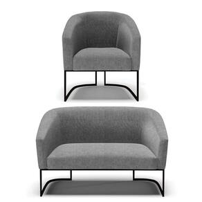 Sofá Namoradeira E Poltrona Base Industrial Preto Stella Linho D03 - D'rossi Cor A26 Gafite