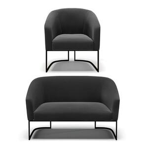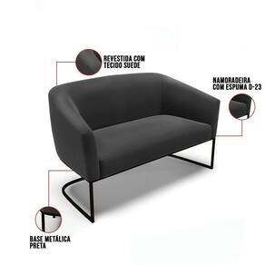 Sofá Namoradeira E Poltrona Base Industrial Preto Stella Suede D03 - D'rossi Cor Preto