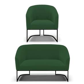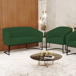 Sofá Namoradeira E Poltrona Base Industrial Preto Stella Veludo D03 - D'rossi Cor Verde