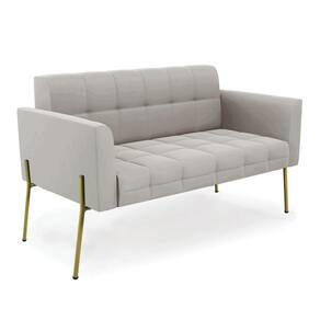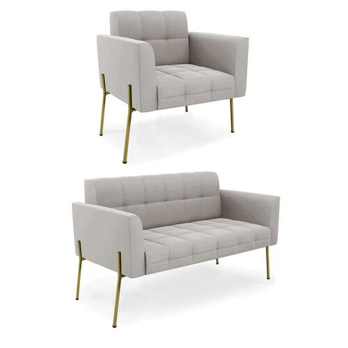 Sofá Namoradeira e Poltrona Base Pé de Ferro Dourado Elisa Veludo Cinza D03 - D`Rossi