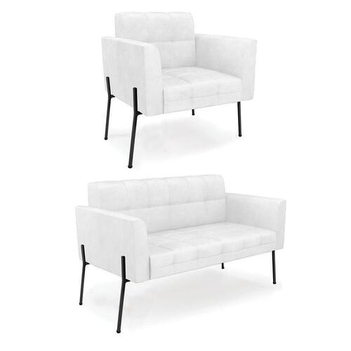 Você gosta de colecionar vários momentos memoráveis com sua família e amigos? Que tal recebê-los, com móveis de altíssima qualidade que só a D'Rossi tem? O Sofá Sofá Namoradeira e Poltrona Elisa é adequado para você! Seu design retrô é a grande tendência do momento. Pode ser utilizado em diversos espaços da casa, em salas, hall de entrada, quartos, cozinhas, varanda, sacada, escritório, dentre outros. Contém as seguintes características: A estrutura é feita Madeira de Eucalipto 100% de reflorestamento, Pés de Ferro Preto que além de ser resistente e durável, suporta em média até 120 kg. Assento, encosto e braços, contém enchimento de espuma D-23 e é estofada em tecido Corano, no tom Branco, que oferece muito conforto e resistência ao sentar, com aquela sensação de maciez e aconchego. Possui também, detalhes de costura no encosto e assento, resultando em um acabamento impecável, conferindo muito mais valor e elegância ao seu espaço. Para complementar a decoração com esse lindo Kit Sofá Namoradeira e Poltrona Elisa, a dica é utilizar mantas, almofadas ou vasinho de flor. E pronto, seu cantinho estará perfeito para descansar e relaxar! Aqui, você encontra várias opções, para que seus amigos e familiares se sintam acolhidos. Garanta já seu Kit Sofá Namoradeira e Poltrona Elisa.