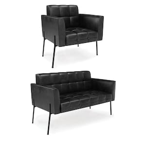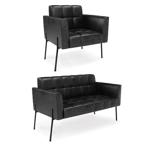 Você gosta de colecionar vários momentos memoráveis com sua família e amigos? Que tal recebê-los, com móveis de altíssima qualidade que só a D'Rossi tem? O Sofá Sofá Namoradeira e Poltrona Elisa é adequado para você! Seu design retrô é a grande tendência do momento. Pode ser utilizado em diversos espaços da casa, em salas, hall de entrada, quartos, cozinhas, varanda, sacada, escritório, dentre outros. Contém as seguintes características: A estrutura é feita Madeira de Eucalipto 100% de reflorestamento, Pés de Ferro Preto que além de ser resistente e durável, suporta em média até 120 kg. Assento, encosto e braços, contém enchimento de espuma D-23 e é estofada em tecido Corano, no tom Preto, que oferece muito conforto e resistência ao sentar, com aquela sensação de maciez e aconchego. Possui também, detalhes de costura no encosto e assento, resultando em um acabamento impecável, conferindo muito mais valor e elegância ao seu espaço. Para complementar a decoração com esse lindo Kit Sofá Namoradeira e Poltrona Elisa, a dica é utilizar mantas, almofadas ou vasinho de flor. E pronto, seu cantinho estará perfeito para descansar e relaxar! Aqui, você encontra várias opções, para que seus amigos e familiares se sintam acolhidos. Garanta já seu Kit Sofá Namoradeira e Poltrona Elisa.