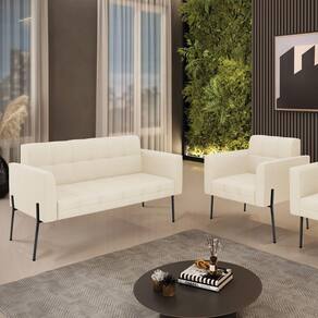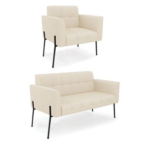 Estrutura: Madeira Eucalipto Espuma: D-23 Tecido: Suede Tipo de pés: Pé de Ferro Preto Peso suportado: Até 120 Kg Garantia: 90 dias contra defeito de fabricação Montagem: O produto vai montado, apenas parafusar a base Instruções de limpeza: Utilizar um pano limpo e levemente úmido Você irá receber: 01 Sofá Namoradeira e 01 Poltrona - Entregue em: 02 Volumes