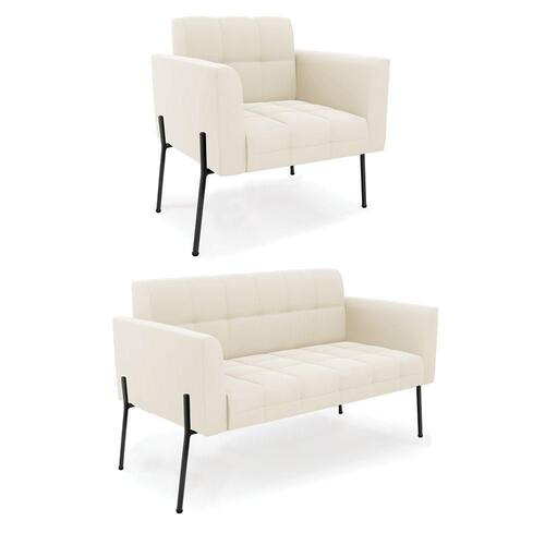 Você irá receber: 01 Sofá Namoradeira e 01 Poltrona - Entregue em: 02 Volumes