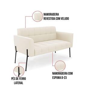 Você gosta de colecionar vários momentos memoráveis com sua família e amigos? Que tal recebê-los, com móveis de altíssima qualidade que só a D'Rossi tem? O Sofá Sofá Namoradeira e Poltrona Elisa é adequado para você! Seu design retrô é a grande tendência do momento. Pode ser utilizado em diversos espaços da casa, em salas, hall de entrada, quartos, cozinhas, varanda, sacada, escritório, dentre outros. Contém as seguintes características: A estrutura é feita Madeira de Eucalipto 100% de reflorestamento, Pés de Ferro Preto que além de ser resistente e durável, suporta em média até 120 kg. Assento, encosto e braços, contém enchimento de espuma D-23 e é estofada em tecido Veludo, na cor Bege, que oferece muito conforto e resistência ao sentar, com aquela sensação de maciez e aconchego. Possui também, detalhes de costura no encosto e assento, resultando em um acabamento impecável, conferindo muito mais valor e elegância ao seu espaço. Para complementar a decoração com esse lindo Kit Sofá Namoradeira e Poltrona Elisa, a dica é utilizar mantas, almofadas ou vasinho de flor. E pronto, seu cantinho estará perfeito para descansar e relaxar! Aqui, você encontra várias opções, para que seus amigos e familiares se sintam acolhidos. Garanta já seu Kit Sofá Namoradeira e Poltrona Elisa.