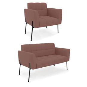 Você gosta de colecionar vários momentos memoráveis com sua família e amigos? Que tal recebê-los, com móveis de altíssima qualidade que só a D'Rossi tem? O Sofá Sofá Namoradeira e Poltrona Elisa é adequado para você! Seu design retrô é a grande tendência do momento. Pode ser utilizado em diversos espaços da casa, em salas, hall de entrada, quartos, cozinhas, varanda, sacada, escritório, dentre outros. Contém as seguintes características: A estrutura é feita Madeira de Eucalipto 100% de reflorestamento, Pés de Ferro Preto que além de ser resistente e durável, suporta em média até 120 kg. Assento, encosto e braços, contém enchimento de espuma D-23 e é estofada em tecido Veludo, na cor Rosê, que oferece muito conforto e resistência ao sentar, com aquela sensação de maciez e aconchego. Possui também, detalhes de costura no encosto e assento, resultando em um acabamento impecável, conferindo muito mais valor e elegância ao seu espaço. Para complementar a decoração com esse lindo Kit Sofá Namoradeira e Poltrona Elisa, a dica é utilizar mantas, almofadas ou vasinho de flor. E pronto, seu cantinho estará perfeito para descansar e relaxar! Aqui, você encontra várias opções, para que seus amigos e familiares se sintam acolhidos. Garanta já seu Kit Sofá Namoradeira e Poltrona Elisa.