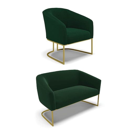 Tem novidades chegando por aqui! Olha só essa nossa inédita Namoradeira e Poltrona Stella Bouclê. Sim, as melhores opções em Namoradeira estão aqui! A Namoradeira e Poltrona Stella Bouclê é para todas as ocasiões, é ideal para você relaxar, assistir tv ou ler um livro, mantendo-o confortável ao longo do dia! Um estofado versátil, que foge do convencional pelo seu design e tecido luxuoso. Seu formato curvo, marcante e sofisticado, oferece conforto de forma excepcional, com aquela sensação de abraço, que deixa o coração quentinho! Desenvolvida com atenção aos detalhes, para atender todas suas expectativas e necessidades. Seu aspecto arredondado e anatômico, possibilita que a postura fique sempre alinhada, mantendo a coluna na posição correta. Ela dispõe de um acabamento impecável, revestida em Bouclê em tom Verde, um tecido maleável que além de ser muito bonito, é a grande tendência do momento, por ser uma lã mais refinada, quente, com toque suave e agradável, semelhante à textura natural da ovelha. Contém uma estrutura robusta, sua sustentação é dada pela Base Industrial no tom Dourado, que garantem mais segurança e firmeza ao sentar-se. Já o enchimento é feito em espuma D-23 no encosto e assento, garantindo maior conforto ao usuário. Ah! Vale a pena lembrar que a Namoradeira e Poltrona Stella Bouclê, foi produzida em quantidades limitadas, para aqueles que procuram criar um visual diferenciado e exclusivo. Então, não deixe de aproveitar esse lançamento, hem! Leve a sua agora mesmo.