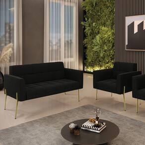 Estrutura: Madeira Eucalipto Espuma: D-23 Tecido: Corino Tipo de pés: Pé de Ferro Dourado Peso suportado: Até 120 Kg Garantia: 90 dias contra defeito de fabricação Montagem: O produto vai montado, apenas parafusar a base Instruções de limpeza: Utilizar um pano limpo e levemente úmido Você irá receber: 01 Sofá Namoradeira e 01 Poltrona - Entregue em: 02 Volumes