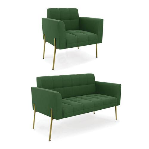Sofá Namoradeira e Poltrona Pé de Ferro Dourado Elisa Suede Verde D03 - D`Rossi