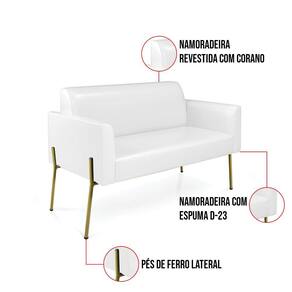 Todo mundo gosta de um ambiente bem decorado, e se for novidade melhor ainda não é mesmo? A D'Rossi, além de entregar beleza, qualidade e confiança aos clientes, ela dispõe das melhores opções em produtos, disponíveis no mercado! Portanto, se você quer um produto sofisticado, opte pelo Sofá Namoradeira e Poltrona. Ele possui um design lindo e sofisticado, com pés de Ferro Lateral Dourado e revestimento em tecido Corano Branco, que harmonizam com qualquer ambiente. Esta mobília fica perfeita na sala de estar, recepções, mesa de jantar ou qualquer outro espaço que você queira decorar com estilo e bom gosto. Ela contém uma estrutura em madeira de reflorestamento eucalipto, que garante a resistência e a sustentabilidade do produto. Ela suporta até 120 kg de peso, podendo ser utilizada por pessoas de diferentes biotipos. Ela tem um acabamento reforçado e espuma de qualidade D-23, garantindo flexibilidade e conforto ao usuário. O Sofá Namoradeira e Poltrona Marisa é um produto de alta qualidade, beleza e funcionalidade. Ele é fácil de transportar, pois tem um peso leve e um tamanho compacto. O Sofá Namoradeira e Poltrona Marisa é ideal, para dar aquele realce que seu ambiente precisa. Tenho certeza que esse móvel é a melhor compra que você irá fazer. Garanta já seu Sofá Namoradeira e Poltrona Marisa e se acomode da melhor maneira possível!
