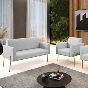Todo mundo gosta de um ambiente bem decorado, e se for novidade melhor ainda não é mesmo? A D'Rossi, além de entregar beleza, qualidade e confiança aos clientes, ela dispõe das melhores opções em produtos, disponíveis no mercado! Portanto, se você quer um produto sofisticado, opte pelo Sofá Namoradeira e Poltrona. Ele possui um design lindo e sofisticado, com pés de Ferro Lateral Dourado e revestimento em tecido Linho Cinza, que harmonizam com qualquer ambiente. Esta mobília fica perfeita na sala de estar, recepções, mesa de jantar ou qualquer outro espaço que você queira decorar com estilo e bom gosto. Ela contém uma estrutura em madeira de reflorestamento eucalipto, que garante a resistência e a sustentabilidade do produto. Ela suporta até 120 kg de peso, podendo ser utilizada por pessoas de diferentes biotipos. Ela tem um acabamento reforçado e espuma de qualidade D-23, garantindo flexibilidade e conforto ao usuário. O Sofá Namoradeira e Poltrona Marisa é um produto de alta qualidade, beleza e funcionalidade. Ele é fácil de transportar, pois tem um peso leve e um tamanho compacto. O Sofá Namoradeira e Poltrona Marisa é ideal, para dar aquele realce que seu ambiente precisa. Tenho certeza que esse móvel é a melhor compra que você irá fazer. Garanta já seu Sofá Namoradeira e Poltrona Marisa e se acomode da melhor maneira possível!
