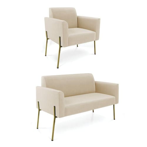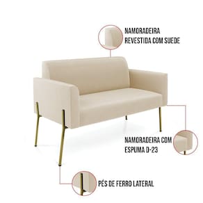 Todo mundo gosta de um ambiente bem decorado, e se for novidade melhor ainda não é mesmo? A D'Rossi, além de entregar beleza, qualidade e confiança aos clientes, ela dispõe das melhores opções em produtos, disponíveis no mercado! Portanto, se você quer um produto sofisticado, opte pelo Sofá Namoradeira e Poltrona. Ele possui um design lindo e sofisticado, com pés de Ferro Lateral Dourado e revestimento em tecido Suede Bege, que harmonizam com qualquer ambiente. Esta mobília fica perfeita na sala de estar, recepções, mesa de jantar ou qualquer outro espaço que você queira decorar com estilo e bom gosto. Ela contém uma estrutura em madeira de reflorestamento eucalipto, que garante a resistência e a sustentabilidade do produto. Ela suporta até 120 kg de peso, podendo ser utilizada por pessoas de diferentes biotipos. Ela tem um acabamento reforçado e espuma de qualidade D-23, garantindo flexibilidade e conforto ao usuário. O Sofá Namoradeira e Poltrona Marisa é um produto de alta qualidade, beleza e funcionalidade. Ele é fácil de transportar, pois tem um peso leve e um tamanho compacto. O Sofá Namoradeira e Poltrona Marisa é ideal, para dar aquele realce que seu ambiente precisa. Tenho certeza que esse móvel é a melhor compra que você irá fazer. Garanta já seu Sofá Namoradeira e Poltrona Marisa e se acomode da melhor maneira possível! Dimensões do Sofá Namoradeira: Altura total: 81 cm Largura total: 114 cm Profundidade total: 64 cm Altura do encosto: 36 cm Largura do assento: 96 cm Profundidade do assento: 48 cm Altura do chão ao assento: 45 cm Espessura do assento: 18 cm Tamanho dos pés: 30 cm Espessura do braço: 9 cm Peso: 21 kg Dimensões da Poltrona: Altura total: 81 cm Largura total: 64 cm Profundidade total: 64 cm Altura do encosto: 36 cm Largura do assento: 47 cm Profundidade do assento: 48 cm Altura do chão ao assento: 45 cm Espessura do assento: 18 cm Tamanho dos pés: 30 cm Espessura do braço: 9 cm Peso: 14 kg Especificações do Produto Estrutura: Madeira Eucalipto Espuma: D-23 Tecido: Suede Tipo de pés: Pés de Ferro Dourado Peso suportado: Até 120 Kg Garantia: 90 dias contra defeito de fabricação Montagem: O produto vai montado, apenas parafusar a base Instruções de limpeza: Utilizar um pano limpo e levemente úmido Você irá receber: 01 Sofá Namoradeira e 01 Poltrona - Entregue em 02 Volumes