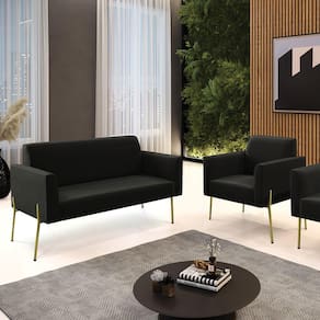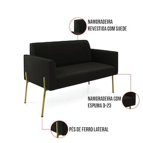 "Todo mundo gosta de um ambiente bem decorado, e se for novidade melhor ainda não é mesmo? A D'Rossi, além de entregar beleza, qualidade e confiança aos clientes, ela dispõe das melhores opções em produtos, disponíveis no mercado! Portanto, se você quer um produto sofisticado, opte pelo Sofá Namoradeira e Poltrona. Ele possui um design lindo e sofisticado, com pés de Ferro Lateral Dourado e revestimento em tecido Suede Preto, que harmonizam com qualquer ambiente. Esta mobília fica perfeita na sala de estar, recepções, mesa de jantar ou qualquer outro espaço que você queira decorar com estilo e bom gosto. Ela contém uma estrutura em madeira de reflorestamento eucalipto, que garante a resistência e a sustentabilidade do produto. Ela suporta até 120 kg de peso, podendo ser utilizada por pessoas de diferentes biotipos. Ela tem um acabamento reforçado e espuma de qualidade D-23, garantindo flexibilidade e conforto ao usuário. O Sofá Namoradeira e Poltrona Marisa é um produto de alta qualidade, beleza e funcionalidade. Ele é fácil de transportar, pois tem um peso leve e um tamanho compacto. O Sofá Namoradeira e Poltrona Marisa é ideal, para dar aquele realce que seu ambiente precisa. Tenho certeza que esse móvel é a melhor compra que você irá fazer. Garanta já seu Sofá Namoradeira e Poltrona Marisa e se acomode da melhor maneira possível!"
