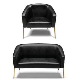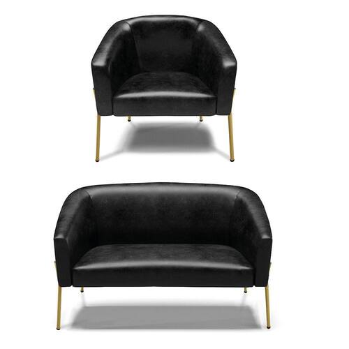 Sofá Namoradeira e Poltrona Pé de Ferro Dourado Stella Corano D03 - D`Rossi - Preto