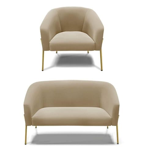 O Sofá Namoradeira 2 lugares com Poltrona Stella é uma peça que combina elegância, conforto e durabilidade. Este conjunto tem um design moderno e sofisticado, com pés de ferro lateral dourado e revestimento em tecido Suede, que harmonizam com qualquer ambiente. Ele é ideal para sala de estar, recepções, mesa de jantar ou qualquer outro espaço que você queira decorar com estilo e bom gosto. Ele tem uma estrutura em madeira de reflorestamento eucalipto, que garante a resistência e a sustentabilidade do produto. Ele suporta até 120 kg de peso, podendo ser utilizado por pessoas de diferentes biotipos. Ele tem um acabamento reforçado e espuma de qualidade D23, que oferece maciez e aconchego. Tem pés em aço carbono e pintura eletrostática, que protegem o produto contra corrosão e desgaste. Ele tem assento com persintas elásticas, que proporcionam flexibilidade e conforto. O kit Stella é um produto de alta qualidade, beleza e funcionalidade. Ele é fácil de transportar, pois tem um peso leve e um tamanho compacto. O Sofá Namoradeira 2 lugares com Poltrona Stella é um produto que vai fazer a diferença na sua decoração e no seu bem-estar. Ele vai trazer charme, conforto e durabilidade para o seu ambiente. Aproveite essa oferta e leve para casa um Sofá Namoradeira 2 lugares com Poltrona qualidade por um preço incrível. Essa é a sua chance de ter um kit maravilhoso por um preço imperdível. Corra e garanta seu Sofá Namoradeira 2 lugares com Poltrona antes que acabe o estoque!