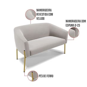 Sofá Namoradeira E Poltrona Pé De Ferro Dourado Stella Veludo D03 - D`rossi Cor Cinza - Blush