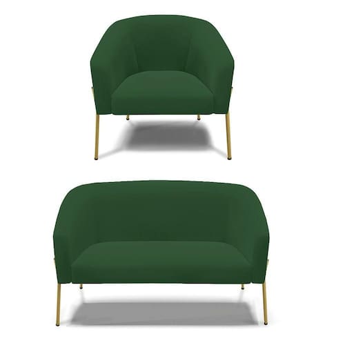O Sofá Namoradeira 2 lugares com Poltrona Stella é uma peça que combina elegância, conforto e durabilidade. Este conjunto tem um design moderno e sofisticado, com pés de ferro lateral dourado e revestimento em tecido Veludo, que harmonizam com qualquer ambiente. Ele é ideal para sala de estar, recepções, mesa de jantar ou qualquer outro espaço que você queira decorar com estilo e bom gosto. Ele tem uma estrutura em madeira de reflorestamento eucalipto, que garante a resistência e a sustentabilidade do produto. Ele suporta até 120 kg de peso, podendo ser utilizado por pessoas de diferentes biotipos. Ele tem um acabamento reforçado e espuma de qualidade D23, que oferece maciez e aconchego. Tem pés em aço carbono e pintura eletrostática, que protegem o produto contra corrosão e desgaste. Ele tem assento com persintas elásticas, que proporcionam flexibilidade e conforto. O kit Stella é um produto de alta qualidade, beleza e funcionalidade. Ele é fácil de transportar, pois tem um peso leve e um tamanho compacto. O Sofá Namoradeira 2 lugares com Poltrona Stella é um produto que vai fazer a diferença na sua decoração e no seu bem-estar. Ele vai trazer charme, conforto e durabilidade para o seu ambiente. Aproveite essa oferta e leve para casa um Sofá Namoradeira 2 lugares com Poltrona qualidade por um preço incrível. Essa é a sua chance de ter um kit maravilhoso por um preço imperdível. Corra e garanta seu Sofá Namoradeira 2 lugares com Poltrona antes que acabe o estoque!