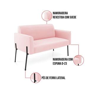 "Todo mundo gosta de um ambiente bem decorado, e se for novidade melhor ainda não é mesmo? A D'Rossi, além de entregar beleza, qualidade e confiança aos clientes, ela dispõe das melhores opções em produtos, disponíveis no mercado! Portanto, se você quer um produto sofisticado, opte pelo Sofá Namoradeira e Poltrona. Ele possui um design lindo e sofisticado, com pés de Ferro Lateral Preto e revestimento em tecido Suede Rosa Bebê, que harmonizam com qualquer ambiente. Esta mobília fica perfeita na sala de estar, recepções, mesa de jantar ou qualquer outro espaço que você queira decorar com estilo e bom gosto. Ela contém uma estrutura em madeira de reflorestamento eucalipto, que garante a resistência e a sustentabilidade do produto. Ela suporta até 120 kg de peso, podendo ser utilizada por pessoas de diferentes biotipos. Ela tem um acabamento reforçado e espuma de qualidade D-23, garantindo flexibilidade e conforto ao usuário. O Sofá Namoradeira e Poltrona Marisa é um produto de alta qualidade, beleza e funcionalidade. Ele é fácil de transportar, pois tem um peso leve e um tamanho compacto. O Sofá Namoradeira e Poltrona Marisa é ideal, para dar aquele realce que seu ambiente precisa. Tenho certeza que esse móvel é a melhor compra que você irá fazer. Garanta já seu Sofá Namoradeira e Poltrona Marisa e se acomode da melhor maneira possível!"