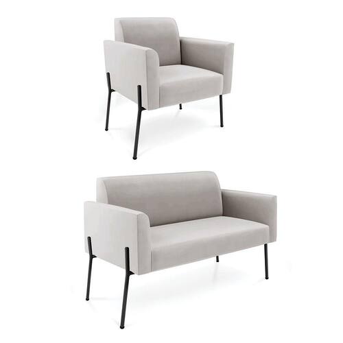 Sofá Namoradeira E Poltrona Pé De Ferro Preto Marisa Veludo D03 - D`rossi Cor Cinza - Blush