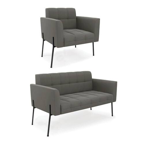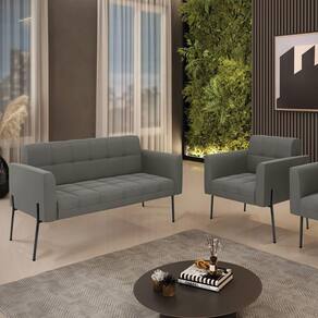 Sofá Namoradeira e Poltrona Pé de Ferro Preto para Sala Elisa Suede D03 - D`Rossi - Grafite