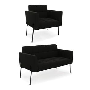 Sofá Namoradeira e Poltrona Pé de Ferro Preto para Sala Elisa Suede D03 - D`Rossi - Rosa Claro