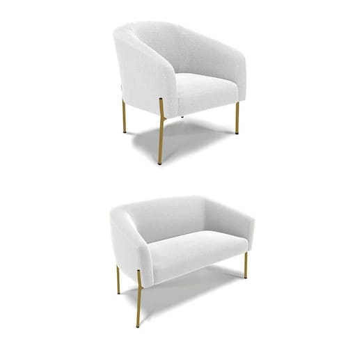 Sofá Namoradeira E Poltrona Pé Ferro Dourado Stella Bouclê D03 - D'rossi Cor Off White