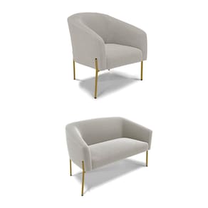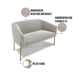 Sofá Namoradeira e Poltrona Pé Ferro Dourado Stella Bouclê D03 - D`Rossi - Cinza