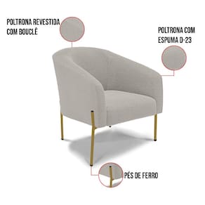 Tem novidades chegando por aqui! Olha só essa nossa inédita Namoradeira e Poltrona Stella Bouclê. Sim, as melhores opções em Namoradeira estão aqui! A Namoradeira e Poltrona Stella Bouclê é para todas as ocasiões, é ideal para você relaxar, assistir tv ou ler um livro, mantendo-o confortável ao longo do dia! Um estofado versátil, que foge do convencional pelo seu design e tecido luxuoso. Seu formato curvo, marcante e sofisticado, oferece conforto de forma excepcional, com aquela sensação de abraço, que deixa o coração quentinho! Desenvolvida com atenção aos detalhes, para atender todas suas expectativas e necessidades. Seu aspecto arredondado e anatômico, possibilita que a postura fique sempre alinhada, mantendo a coluna na posição correta. Ela dispõe de um acabamento impecável, revestida em Bouclê um tecido maleável que além de ser muito bonito, é a grande tendência do momento, por ser uma lã mais refinada, quente, com toque suave e agradável, semelhante à textura natural da ovelha. Contém uma estrutura robusta, sua sustentação é dada pelos Pés de Ferro no tom Dourado, que garantem mais segurança e firmeza ao sentar-se. Já o enchimento é feito em espuma D-23 no encosto e assento, garantindo maior conforto ao usuário. Ah! Vale a pena lembrar que a Namoradeira e Poltrona Stella Bouclê, foi produzida em quantidades limitadas, para aqueles que procuram criar um visual diferenciado e exclusivo. Então, não deixe de aproveitar esse lançamento, hem! Leve a sua agora mesmo.