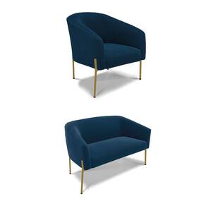 Sofá Namoradeira e Poltrona Pé Ferro Dourado Stella Bouclê D03 - D`Rossi - Azul