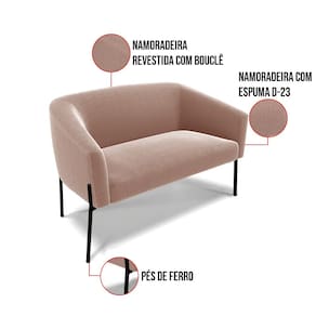 Tem novidades chegando por aqui! Olha só essa nossa inédita Namoradeira e Poltrona Stella Bouclê. Sim, as melhores opções em Namoradeira estão aqui! A Namoradeira e Poltrona Stella Bouclê é para todas as ocasiões, é ideal para você relaxar, assistir tv ou ler um livro, mantendo-o confortável ao longo do dia! Um estofado versátil, que foge do convencional pelo seu design e tecido luxuoso. Seu formato curvo, marcante e sofisticado, oferece conforto de forma excepcional, com aquela sensação de abraço, que deixa o coração quentinho! Desenvolvida com atenção aos detalhes, para atender todas suas expectativas e necessidades. Seu aspecto arredondado e anatômico, possibilita que a postura fique sempre alinhada, mantendo a coluna na posição correta. Ela dispõe de um acabamento impecável, revestida em Bouclê em tom Rosê, um tecido maleável que além de ser muito bonito, é a grande tendência do momento, por ser uma lã mais refinada, quente, com toque suave e agradável, semelhante à textura natural da ovelha. Contém uma estrutura robusta, sua sustentação é dada pelos Pés de Ferro no tom Preto, que garantem mais segurança e firmeza ao sentar-se. Já o enchimento é feito em espuma D-23 no encosto e assento, garantindo maior conforto ao usuário. Ah! Vale a pena lembrar que a Namoradeira e Poltrona Stella Bouclê, foi produzida em quantidades limitadas, para aqueles que procuram criar um visual diferenciado e exclusivo. Então, não deixe de aproveitar esse lançamento, hem! Leve a sua agora mesmo.