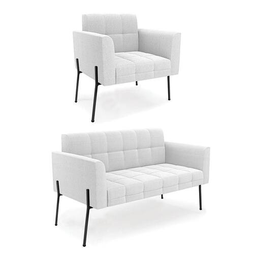 O Sofá Namoradeira e Poltrona Elisa é uma mobília que combina elegância, conforto e durabilidade. Ele tem um design retrô e sofisticado, com Pés Laterais de Ferro Preto e revestimento em tecido Bouclê Off White, que harmonizam com qualquer ambiente. Ele é ideal para sala de estar, recepções, escritórios, cozinhas ou qualquer outro espaço que você queira decorar com estilo e bom gosto. Ele tem uma estrutura em madeira de reflorestamento eucalipto, que garante a resistência e a sustentabilidade do produto. Ele suporta até 180 kg de peso, podendo ser utilizada por pessoas de diferentes biotipos. Ele tem um acabamento reforçado e espuma de qualidade D23, que oferece maciez e aconchego. Ele contém detalhes de costura no encosto e assento, resultando em um acabamento impecável, conferindo muito mais valor e elegância ao produto. O Sofá Namoradeira e Poltrona Elisa é um móvel de alta qualidade, beleza e funcionalidade. Ele é fácil de transportar, pois tem um peso leve e um tamanho compacto. O Sofá Namoradeira e Poltrona Elisa é um produto que vai fazer a diferença na sua decoração e no seu bem-estar. Ele vai trazer charme, conforto e durabilidade para o seu ambiente. Aproveite essa oferta e leve para casa um Sofá Namoradeira e Poltrona de qualidade por um preço incrível. Essa é a sua chance de ter um Sofá Namoradeira e Poltrona maravilhoso por um preço imperdível. Corra e garanta o seu antes que acabe o estoque!