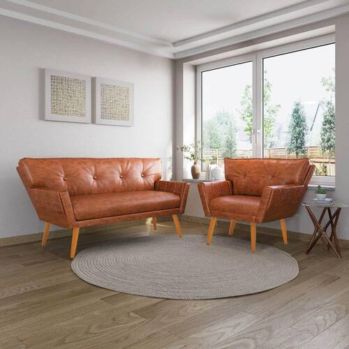 Sofá Namoradeira E Poltrona Pé Palito Madeira Anitta Sintético Pu Nozes D03 - D'rossi O Sofá Namoradeira e Poltrona Anitta Nozes é a união perfeita entre design sofisticado, conforto absoluto e resistência. Seu estofamento em tecido Sintético PU garante um toque elegante e de fácil manutenção, enquanto os pés palito de madeira, adiciona um charme exclusivo e assegura firmeza e durabilidade ao uso. O assento com espuma D26 proporciona maciez envolvente, e o encosto fixo com fibra siliconada traz aconchego extra, valorizado pelo acabamento em botonê que imprime sofisticação. O formato levemente triangular do encosto e os frisos delicados nos braços reforçam o visual contemporâneo, tornando a peça única. Produzido em madeira de reflorestamento eucalipto, o sofá namoradeira Anitta combina sustentabilidade e resistência, suportando até 180 kg. Compacto e leve, esse conjunto é prático para transportar e se adapta facilmente a diferentes ambientes, como sala de estar, recepção, escritório ou até mesmo mesa de jantar. Mais do que um móvel, é uma escolha inteligente para quem deseja unir estilo, qualidade e versatilidade em um só produto. Dimensões da Poltrona: Altura Total: 80 cm Largura Total: 78 cm Profundidade Total: 65 cm Altura do Encosto: 37 cm Largura do Assento: 54 cm Profundidade do Assento: 46 cm Altura do chão ao Assento: 45 cm Espessura do Assento: 15 cm Espessura do braço: 10 cm Altura do chão ao braço: 63 cm Altura interna do braço: 20 cm Peso: 17 kg Dimensões da Namoradeira: Altura Total: 80 cm Largura Total: 120 cm Profundidade Total: 63 cm Altura do Encosto: 36 cm Largura do Assento: 100 cm Profundidade do Assento: 49 cm Altura do chão ao Assento: 45 cm Altura do chão ao Braço: 64 cm Espessura do Braço: 10 cm Espessura do Assento: 15 cm Peso: 26 kg Especificações do Produto: Estrutura: Madeira de Eucalipto Material do Estofamento: Espuma D-26 (alta densidade) Revestimento: Sintético PU Peso Máximo Suportado: Até 180 Kg Tipo de Pés: Pés Palito de Madeira Inclui Almofada Extra: Não Tipo de Encosto: Fixo com fibra siliconada Tipo de Assento: Fixo Com Apoio de Pés: Não Com Altura Ajustável: Não É Reclinável: Não É Giratória: Não Diferenciais: Design do encosto, mais largo que assento, criando uma silhueta imponente. Detalhes em traços verticais que valorizam os braços da poltrona. Complexidade da Montagem: Baixa Montagem: Enviado montado; requer apenas encaixe dos pés. Garantia: 90 dias contra defeito de fabricação Instruções de Limpeza: Utilizar um pano limpo e levemente úmido Quantidade de Volumes: 2 Caixas Medida das Embalagens: Caixa 1: 1,20 x 69 x 58cm; Caixa 2: 84 x 70 x 55cm Peso Total das Embalagens: 27 kg Entrega: É feita somente até o térreo ou portaria. Confira sempre as medidas das embalagens para assegurar que o produto passe por portas e escadas do local.
