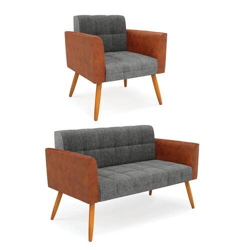Você irá receber: 01 Sofá Namoradeira e 01 Poltrona - Entregue em: 02 Volumes