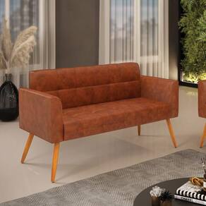 Sofá Namoradeira Elisa Corano Pés Palito Castanho - D`rossi Cor Nozes - Blush