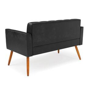 Você gosta de colecionar vários momentos memoráveis com sua família e amigos? Que tal recebê-los, com móveis de altíssima qualidade que só a DRossi tem? A Namoradeira 2 Lugares Elisa é adequada para você! Seu design retrô é a grande tendência do momento. Pode ser usada em diversos espaços da casa, em salas, hall de entrada, quartos, cozinhas, varanda, sacada, escritório, dentre outros. Contém as seguintes características: A estrutura é feita de madeira de Eucalipto 100% de reflorestamento, e os Pés Palito Castanho, além de serem resistentes e duráveis, suportam em média até 120 kg. Assento, encosto e braços, contém enchimento de espuma D-23 e é estofada em tecido Corano, no tom Preto, que oferece muito conforto e resistência ao sentar, com aquela sensação de maciez e aconchego. Possui também, detalhes de costura no encosto e assento, resultando em um acabamento impecável, conferindo muito mais valor e elegância ao seu espaço. Para complementar a decoração com essa linda namoradeira, a dica é utilizar mantas, almofadas ou vasinho de flor. E pronto, seu cantinho estará perfeito para descansar e relaxar! Aqui, você encontra várias opções, para que seus amigos e familiares se sintam acolhidos. Garanta já sua Namoradeira Elisa.