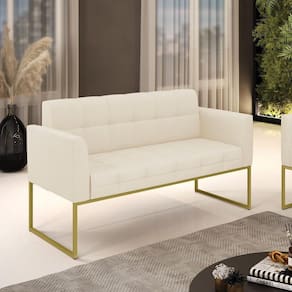 Você gosta de colecionar vários momentos memoráveis com sua família e amigos? Que tal recebê-los, com móveis de altíssima qualidade que só a DRossi tem? A Namoradeira 2 Lugares Elisa é adequada para você! Seu design retrô é a grande tendência do momento. Pode ser usada em diversos espaços da casa, em salas, hall de entrada, quartos, cozinhas, varanda, sacada, escritório, dentre outros. Contém as seguintes características: A estrutura é feita de madeira de Eucalipto 100% de reflorestamento, e a Base Industrial Metálica Dourada, além de ser resistente e durável, suporta em média até 120 kg. Assento, encosto e braços, contém enchimento de espuma D-23 e é estofada em tecido Linho, no tom Bege, que oferece muito conforto e resistência ao sentar, com aquela sensação de maciez e aconchego. Possui também, detalhes de costura no encosto e assento, resultando em um acabamento impecável, conferindo muito mais valor e elegância ao seu espaço. Para complementar a decoração com essa linda namoradeira, a dica é utilizar mantas, almofadas ou vasinho de flor. E pronto, seu cantinho estará perfeito para descansar e relaxar! Aqui, você encontra várias opções, para que seus amigos e familiares se sintam acolhidos. Garanta já sua Namoradeira Elisa.