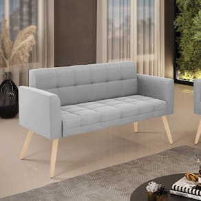 Você gosta de colecionar vários momentos memoráveis com sua família e amigos? Que tal recebê-los, com móveis de altíssima qualidade que só a DRossi tem? A Namoradeira 2 Lugares Elisa é adequada para você! Seu design retrô é a grande tendência do momento. Pode ser usada em diversos espaços da casa, em salas, hall de entrada, quartos, cozinhas, varanda, sacada, escritório, dentre outros. Contém as seguintes características: A estrutura é feita de madeira de Eucalipto 100% de reflorestamento, e os Pés Palito Natural, além de serem resistentes e duráveis, suportam em média até 120 kg. Assento, encosto e braços, contém enchimento de espuma D-23 e é estofada em tecido Suede, no tom Cinza, que oferece muito conforto e resistência ao sentar, com aquela sensação de maciez e aconchego. Possui também, detalhes de costura no encosto e assento, resultando em um acabamento impecável, conferindo muito mais valor e elegância ao seu espaço. Para complementar a decoração com essa linda namoradeira, a dica é utilizar mantas, almofadas ou vasinho de flor. E pronto, seu cantinho estará perfeito para descansar e relaxar! Aqui, você encontra várias opções, para que seus amigos e familiares se sintam acolhidos. Garanta já sua Namoradeira Elisa.