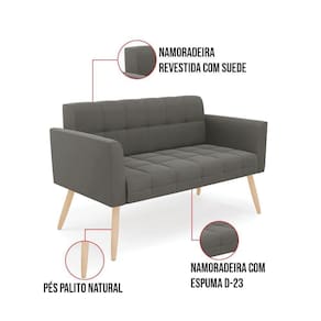 Você gosta de colecionar vários momentos memoráveis com sua família e amigos? Que tal recebê-los, com móveis de altíssima qualidade que só a DRossi tem? A Namoradeira 2 Lugares Elisa é adequada para você! Seu design retrô é a grande tendência do momento. Pode ser usada em diversos espaços da casa, em salas, hall de entrada, quartos, cozinhas, varanda, sacada, escritório, dentre outros. Contém as seguintes características: A estrutura é feita de madeira de Eucalipto 100% de reflorestamento, e os Pés Palito , além de serem resistentes e duráveis, suportam em média até 120 kg. Assento, encosto e braços, contém enchimento de espuma D-23 e é estofada em tecido Suede, no tom Grafite, que oferece muito conforto e resistência ao sentar, com aquela sensação de maciez e aconchego. Possui também, detalhes de costura no encosto e assento, resultando em um acabamento impecável, conferindo muito mais valor e elegância ao seu espaço. Para complementar a decoração com essa linda namoradeira, a dica é utilizar mantas, almofadas ou vasinho de flor. E pronto, seu cantinho estará perfeito para descansar e relaxar! Aqui, você encontra várias opções, para que seus amigos e familiares se sintam acolhidos. Garanta já sua Namoradeira Elisa.