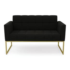 Você gosta de colecionar vários momentos memoráveis com sua família e amigos? Que tal recebê-los, com móveis de altíssima qualidade que só a D'Rossi tem? A Namoradeira 2 Lugares Elisa é adequada para você! Seu design retrô é a grande tendência do momento. Pode ser usada em diversos espaços da casa, em salas, hall de entrada, quartos, cozinhas, varanda, sacada, escritório, dentre outros. Contém as seguintes características: A estrutura é feita de madeira de Eucalipto 100% de reflorestamento, e a Base Industrial Metálica Dourada, além de ser resistente e durável, suporta em média até 120 kg. Assento, encosto e braços, contém enchimento de espuma D-23 e é estofada em tecido Suede, no tom Preto, que oferece muito conforto e resistência ao sentar, com aquela sensação de maciez e aconchego. Possui também, detalhes de costura no encosto e assento, resultando em um acabamento impecável, conferindo muito mais valor e elegância ao seu espaço. Para complementar a decoração com essa linda namoradeira, a dica é utilizar mantas, almofadas ou vasinho de flor. E pronto, seu cantinho estará perfeito para descansar e relaxar! Aqui, você encontra várias opções, para que seus amigos e familiares se sintam acolhidos. Garanta já sua Namoradeira Elisa.