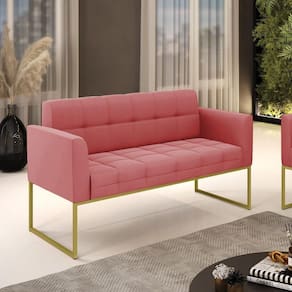 Você gosta de colecionar vários momentos memoráveis com sua família e amigos? Que tal recebê-los, com móveis de altíssima qualidade que só a DRossi tem? A Namoradeira 2 Lugares Elisa é adequada para você! Seu design retrô é a grande tendência do momento. Pode ser usada em diversos espaços da casa, em salas, hall de entrada, quartos, cozinhas, varanda, sacada, escritório, dentre outros. Contém as seguintes características: A estrutura é feita de madeira de Eucalipto 100% de reflorestamento, e a Base Industrial Metálica Dourada, além de ser resistente e durável, suporta em média até 120 kg. Assento, encosto e braços, contém enchimento de espuma D-23 e é estofada em tecido Suede, no tom Rosê, que oferece muito conforto e resistência ao sentar, com aquela sensação de maciez e aconchego. Possui também, detalhes de costura no encosto e assento, resultando em um acabamento impecável, conferindo muito mais valor e elegância ao seu espaço. Para complementar a decoração com essa linda namoradeira, a dica é utilizar mantas, almofadas ou vasinho de flor. E pronto, seu cantinho estará perfeito para descansar e relaxar! Aqui, você encontra várias opções, para que seus amigos e familiares se sintam acolhidos. Garanta já sua Namoradeira Elisa.